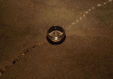 強い想いが昇華されずに残ったとき、それは個を離れても自然の循環のように巡り続ける――そのイメージを磁石や水、風、鏡、ファウンドオブジェクトを用いて構成した。